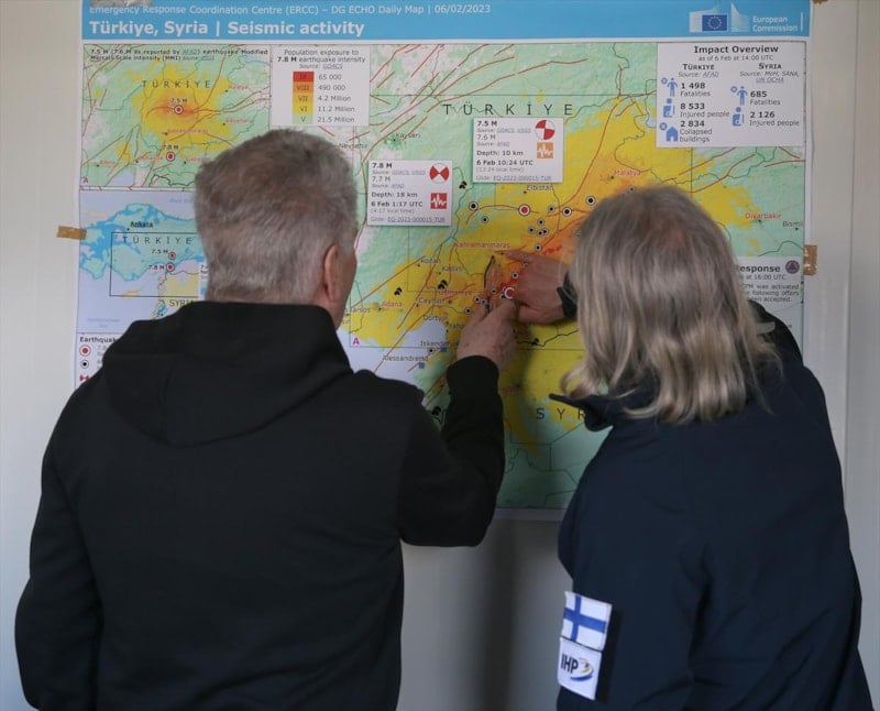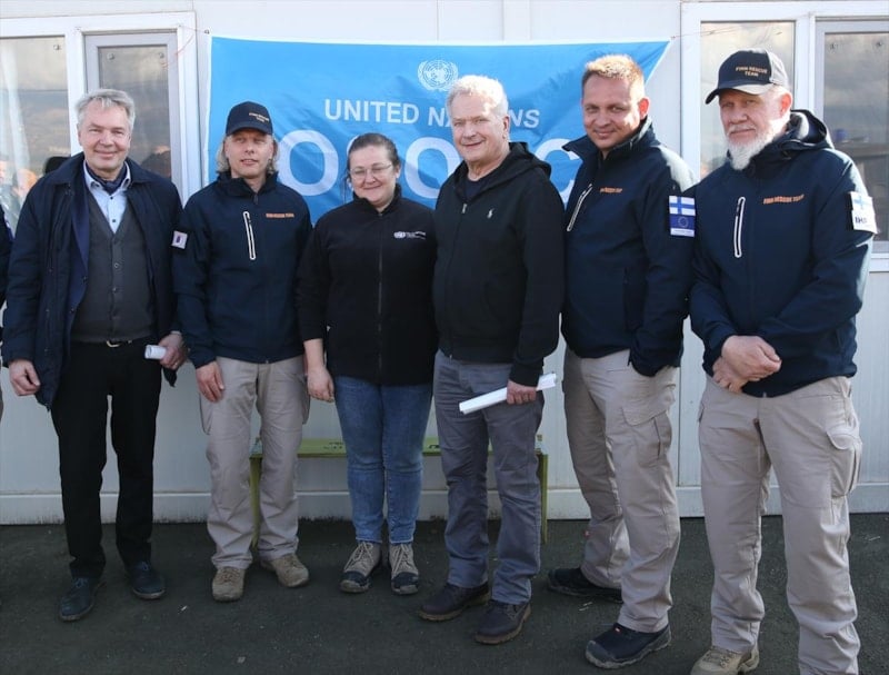 Niinistö, konteyner kentin ardından Finlandiyalı arama kurtarma ekibinin bulunduğu Birleşmiş Milletler İnsani İlişkiler Koordinasyon Ofisi'ni (OCHA) de ziyaret ederek yetkililerden bilgi aldı ve sahada incelemelerde bulundu.