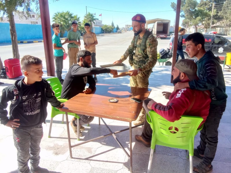 Fırat Kalkanı Harekatı bölgesinde, terör örgütü elebaşı Gülen'in ölümü tatlı dağıtılarak kutlandı.