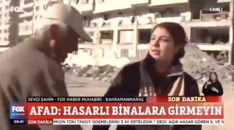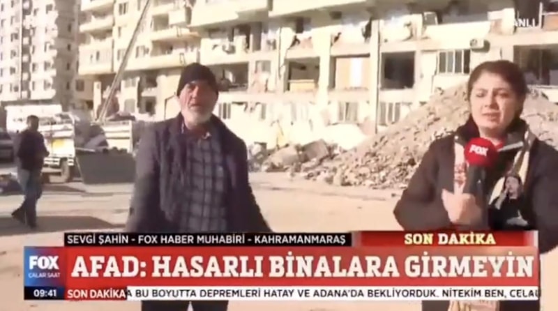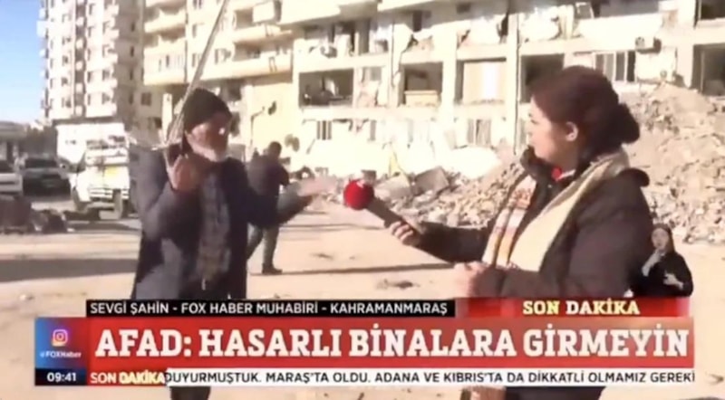 Yaptığı provakatif yayınlarla dikkat çeken Fox TV muhabiri, kendisine mikrofon uzatılan depremzedenin, "Yapmayın insanlar ölmüş yapmayın ya. Herkes can derdinde daha siz çekme derdindesiniz." tepkisiyle karşılaştı.