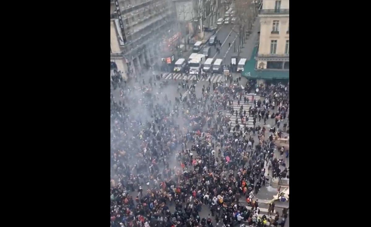 Paris, Rennes, Rouen gibi farklı kentlerde, polis ve göstericiler arasında arbede yaşanırken, göstericiler durak araç karakol ne varsa ateşe vermeye devam ediyor..