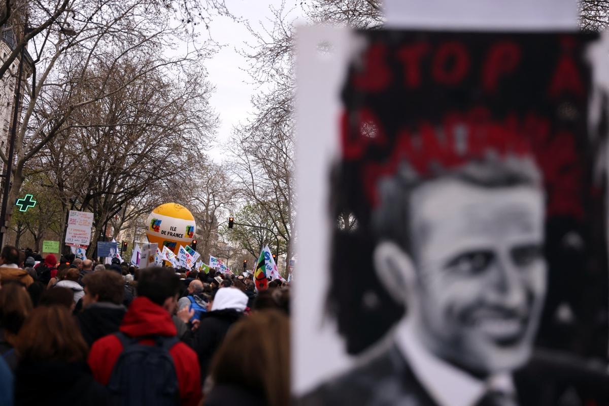 Macron karşıtı sloganlar atan göstericiler, hükümeti protesto etti.