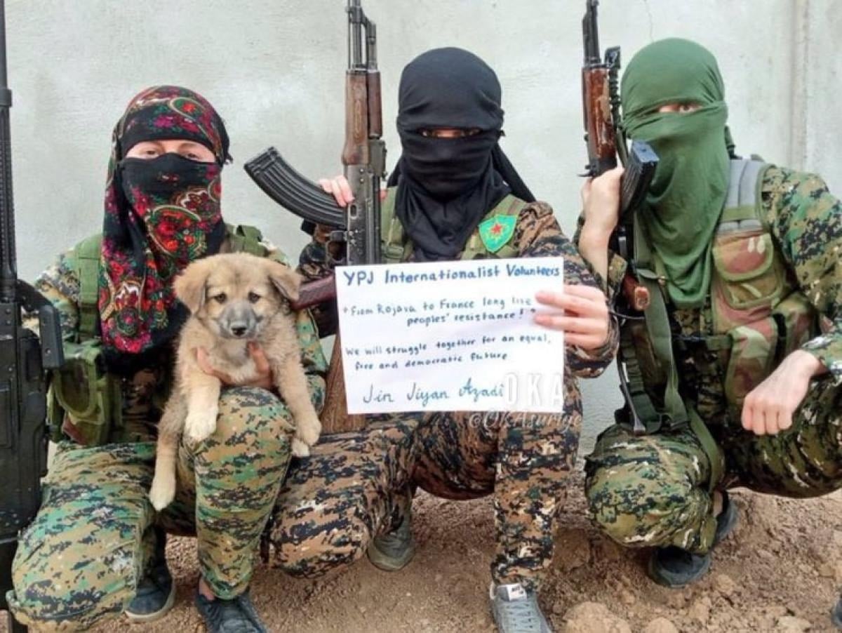 Örgütün Suriye’deki kolu YPG’nin kadın yapılanması YPJ terör örgütü, Fransa’daki protestoculara, “Yaşasın Rojova’dan Fransa’ya Halkların Direnişi” yazılı destek mesajı paylaştı.