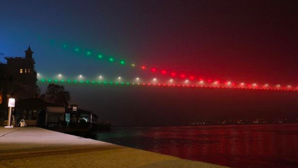 FSM Köprüsü, Karabağ Zaferi'nin birinci yıl dönümü dolayısıyla mavi, kırmızı ve yeşil renklerle aydınlatıldı.