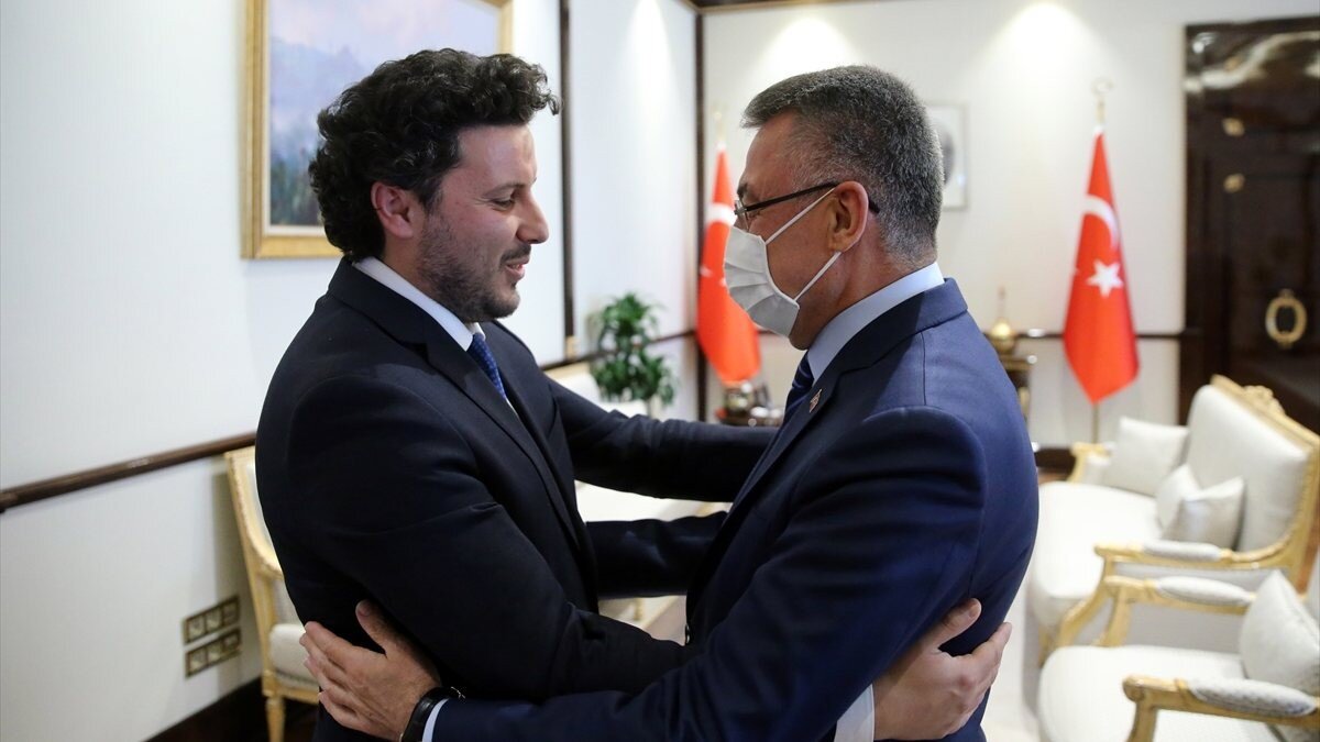 Cumhurbaşkanı Yardımcısı Fuat Oktay, Abazoviç'i Cumhurbaşkanlığı Külliyesi'nde kabul etti.