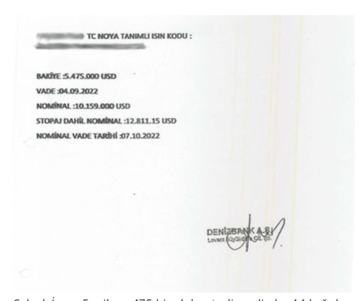 A4 kağıtta nominal ödenecek tutar olarak 3 milyon 675 bin dolar belirtildi.