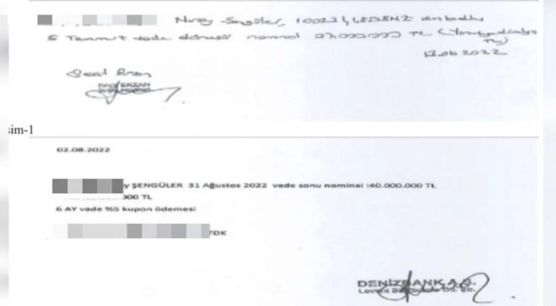 Seçil Erzan, bazı müştekilere banka antetli ve kaşesi olmayan buruşuk küçük kağıtlar verdiği görüldü. Bazı kağıtların ise not kağıtlarına yazılarak verildiği görülüyor. Kağıtların bazılarında banka kaşesi görülürken diğerlerinde ise sadece Erzan'ın ıslak imzası var.