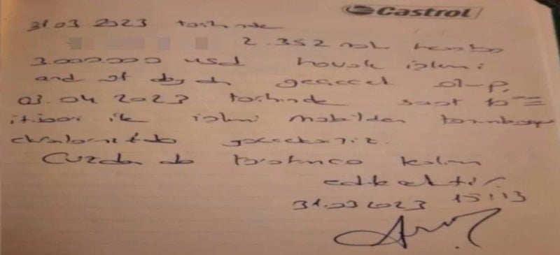 El yazısıyla, banka kaşesi olmayan kağıtlar verdi