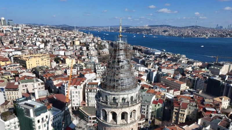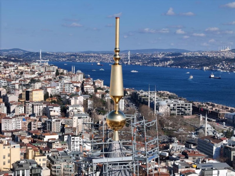 İstanbul Boğazı'yla bütünleşen Galata Kulesi'nin altın rengindeki alemi, kartpostallık görüntü oluşturdu. Tarihte ilk kez alemsiz kalan Galata Kulesi'nin tekrar eski görünümüne kavuştuğu görüldü.