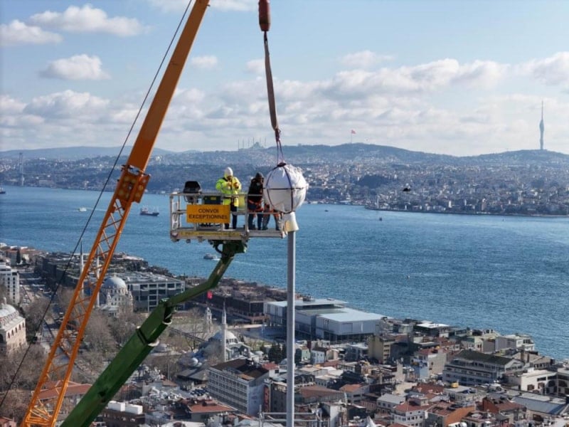 Yenilenen alem, nefes kesen operasyonla Galata Kulesi’ne yerleştirildi. Tarihi kuleye alemin takıldığı anlar drone'la görüntülendi.