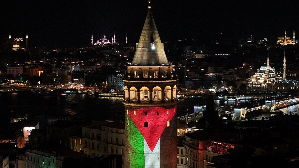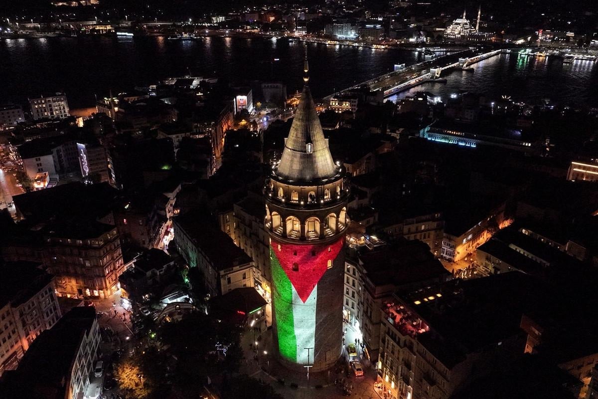 İstanbul’un simge yapılarından Galata Kulesi, Kültür ve Turizm Bakanlığı tarafından Filistin’e destek amacıyla ve İsrail’in bir yıldır süren saldırılarına dikkat çekmek için Filistin bayrağı renkleriyle aydınlatıldı.