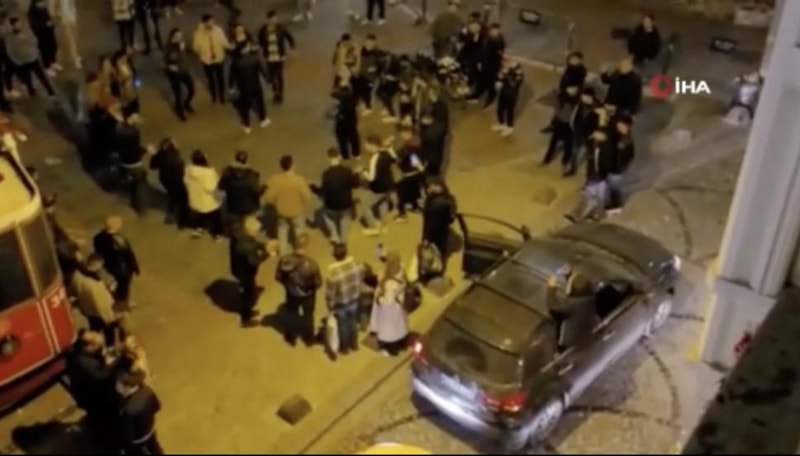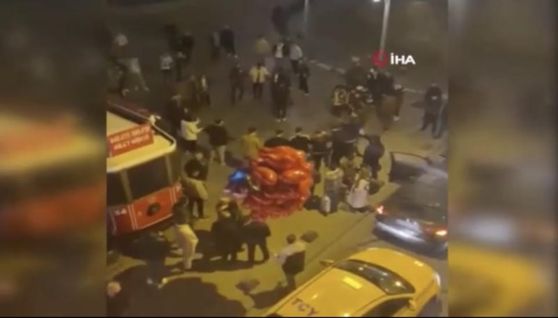 İstanbul'da Beyoğlu Galata Kulesi Meydanı’na gece yarısı araçlarla gelen bir grup, hastaneye giden tek yolu trafiğe kapatmış, araçlarından inen grup, ardından meydanda halay çekmeye başlamıştı.