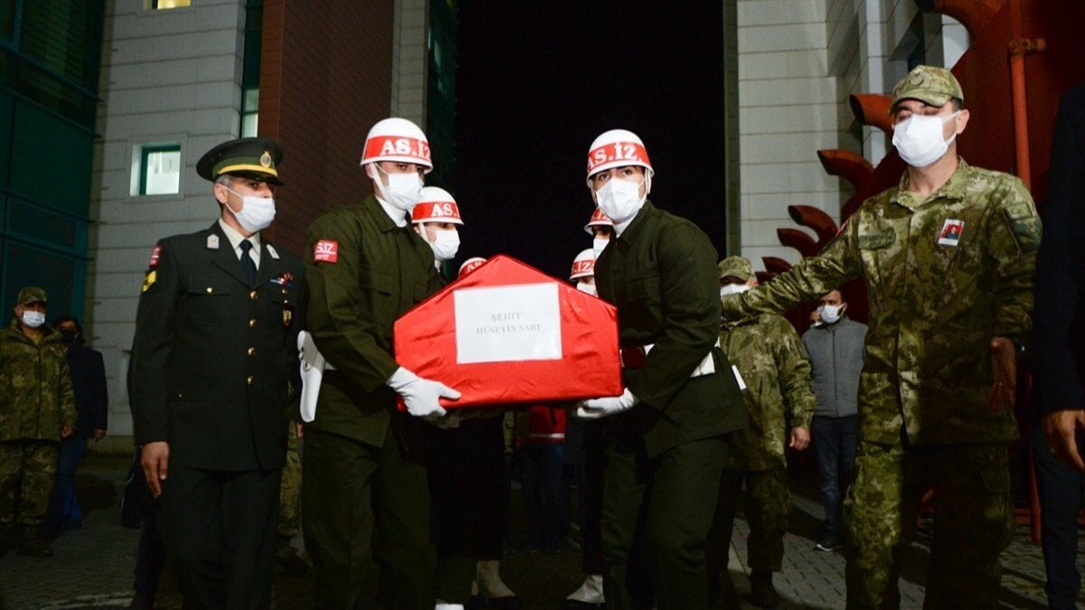 Sarı'nın Türk bayrağına sarılı tabutu, silah arkadaşlarının omuzlarında Necip Fazıl Şehir Hastanesi morguna götürüldü.