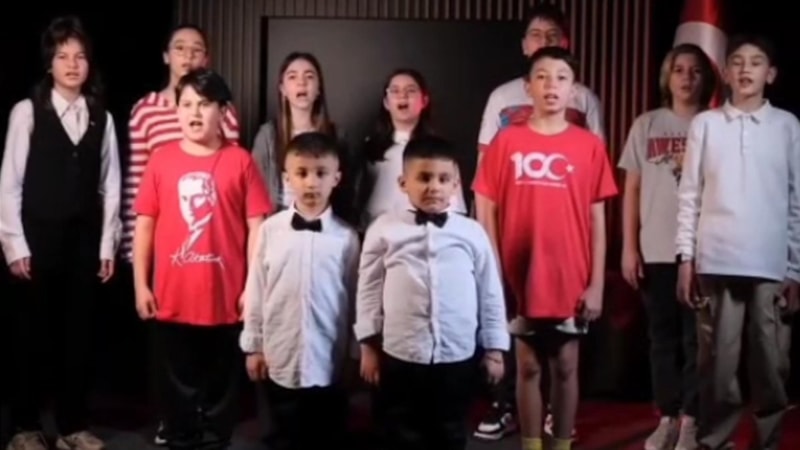 Marşın son kıtası ise 11 çocuk tarafından hep bir ağızdan seslendirildi.