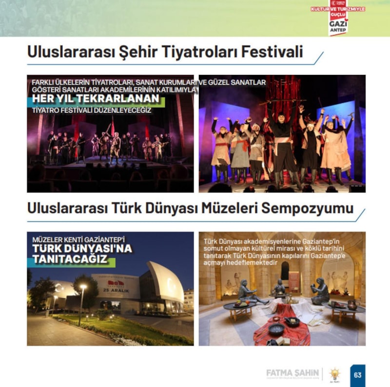 2014 yılından bu yana Türkiye'nin ilk kadın büyükşehir belediye başkanı olan Gaziantep Büyükşehir Belediye Başkanı Fatma Şahin, 2024-2029 dönemine özel projelerini tanıttı.