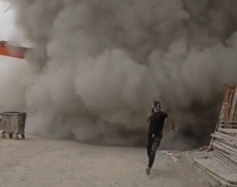 Çökmenin etkisiyle çevreyi büyük bir toz bulutu kapladı.
