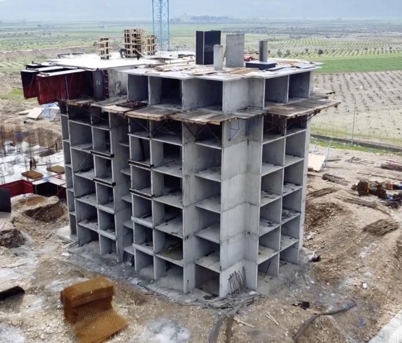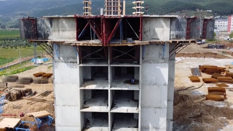 Asrın felaketinde büyük yıkımın yaşandığı Gaziantep'in İslahiye ilçesinde, 17 bloktan oluşan dairelerin zemin artı 5 katlı ilk bloğunda tünel kalıp çalışması tamamlandı. Blokta, ahşap işleri ve iç tesisat çalışmasına başlanacak.