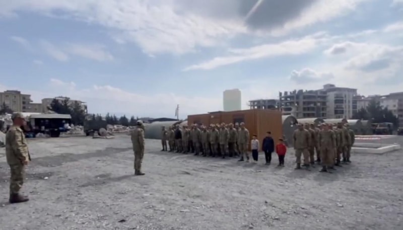 Mehmetçik'e, depremzede çocuklar da eşlik etti.