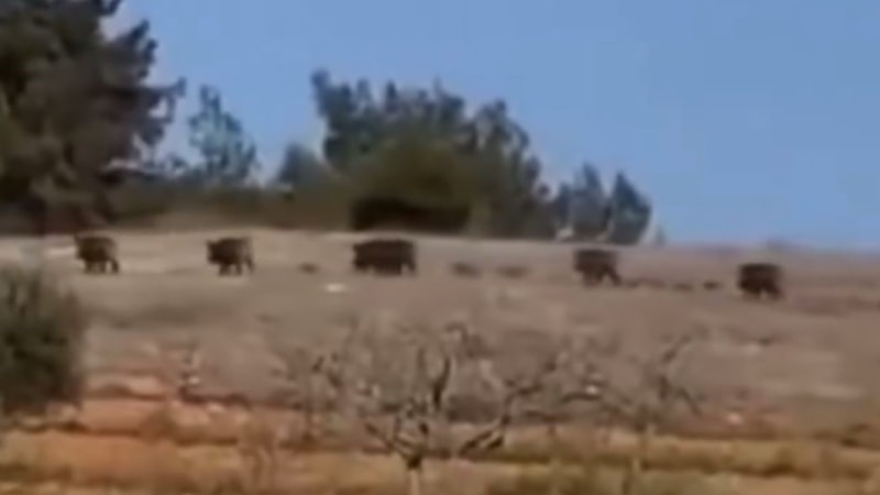 Nizip ilçesinde ormanlık alanda görülen domuz sürüsü vatandaşları endişelendirdi. Tarım arazilerine zarar vermesinden korkulan sürü, cep telefonu kamerasına yansıdı.