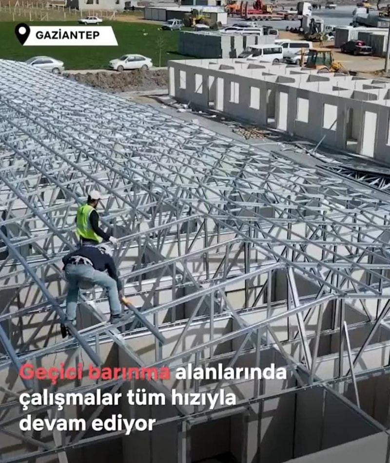 Hummalı çalışmaların devam ettiği geçici barınma alanlarının kısa sürede tamamlanması amaçlanıyor.