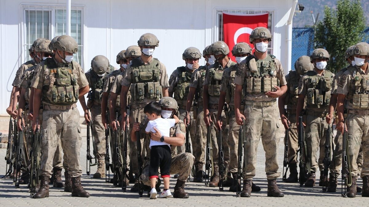 Jandarma Genel Komutanlığı'na duygularını içeren mektup gönderen 12 yaşındaki ikiz kardeşler Mehmet Sancar ve Müslüm Efe ile 8 yaşındaki kardeşleri Toprak Çevirgen de kamuflaj giyerek törene katıldı.