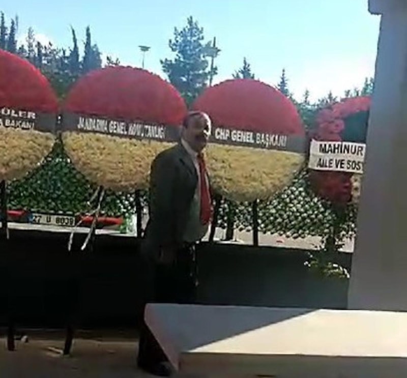 Gaziantep'te şehit Piyade Uzman Çavuş Abdulkadir İyem'in cenaze namazı öncesinde CHP Genel Başkanı Özgür Özel'in yolladığı çelenk, şehidin yakınları tarafından tekbirler altında parçalanarak dışarı atıldı.