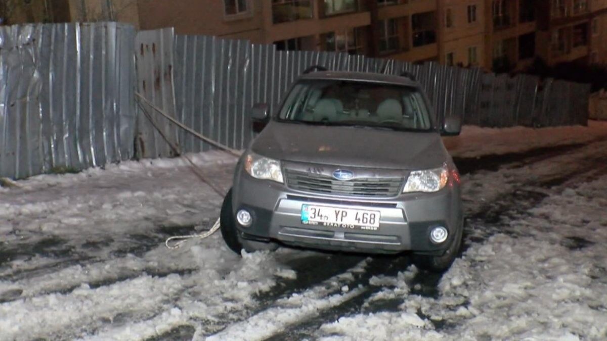 İstanbul Gaziosmanpaşa'da 34 YP 468 plakalı otomobilinin sürücüsü, karla kaplı sokağa girdi.