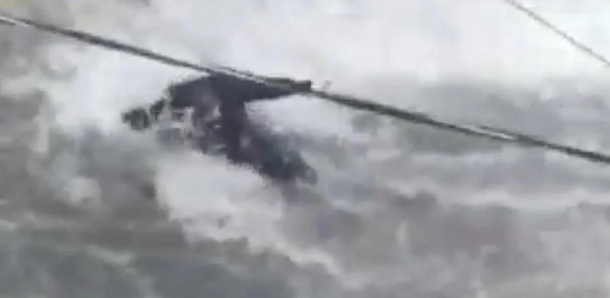 Kadının sel sularıyla mücadelesi ise kameralara yansıdı.