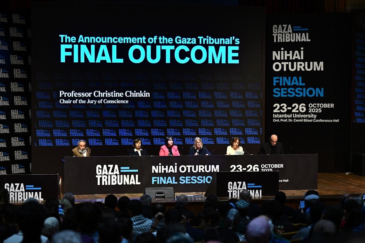 İstanbul Üniversitesi Prof. Dr. Cemil Bilsel Konferans Salonu'nda eski Birleşmiş Milletler (BM) Filistin Özel Raportörü Prof. Dr. Richard Falk başkanlığında toplanan Gazze Mahkemesi üyeleri, nihai kararını duyurdu.