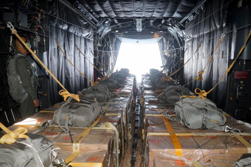 Yardım malzemelerinin geçişinin engellenmesi nedeniyle yardımlar havadan ulaştırılıyor.