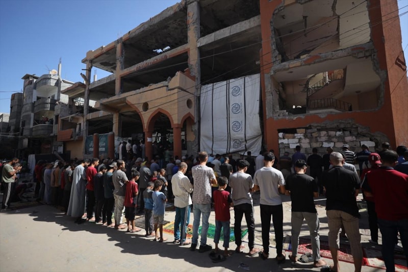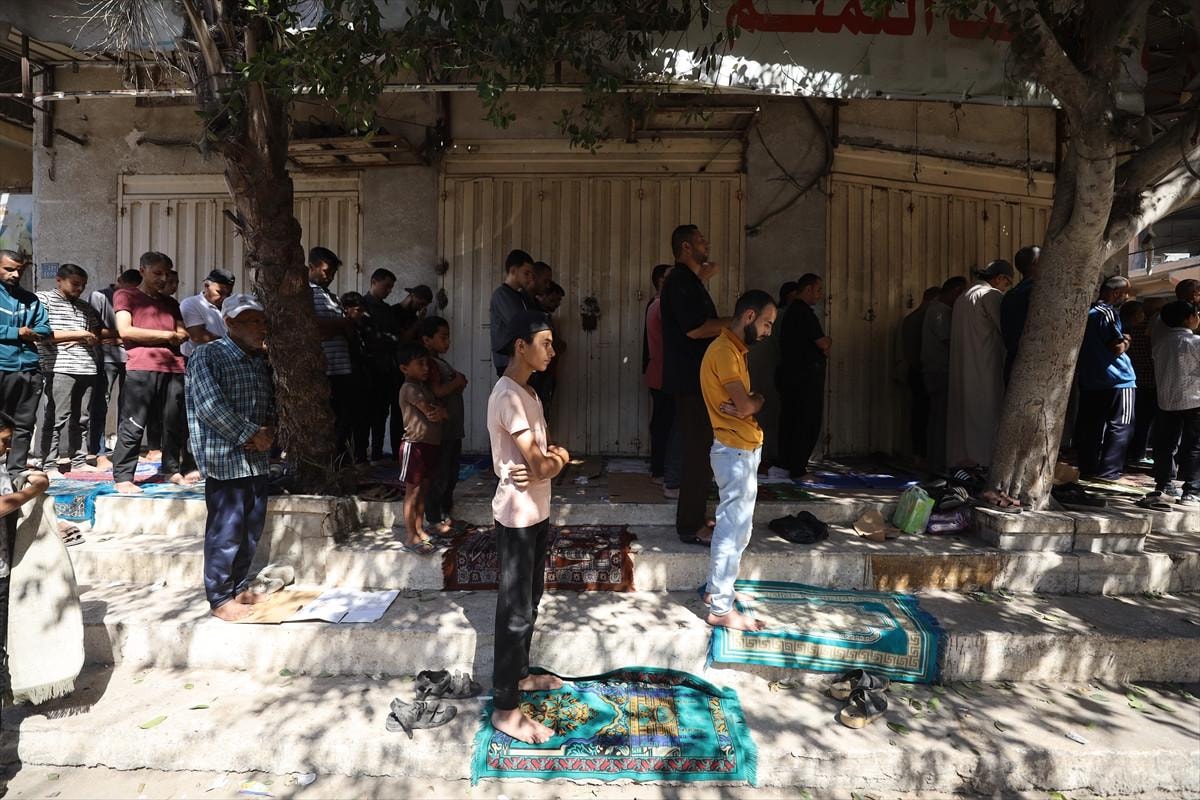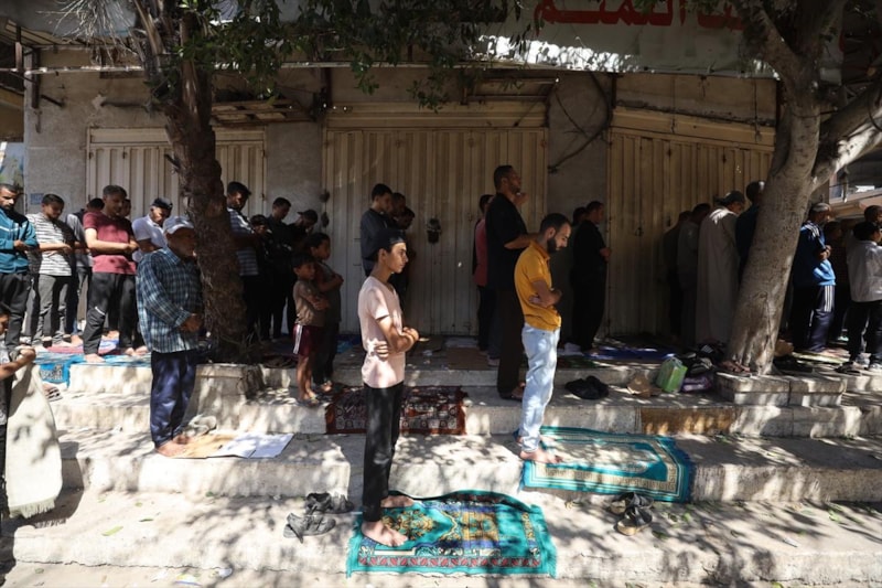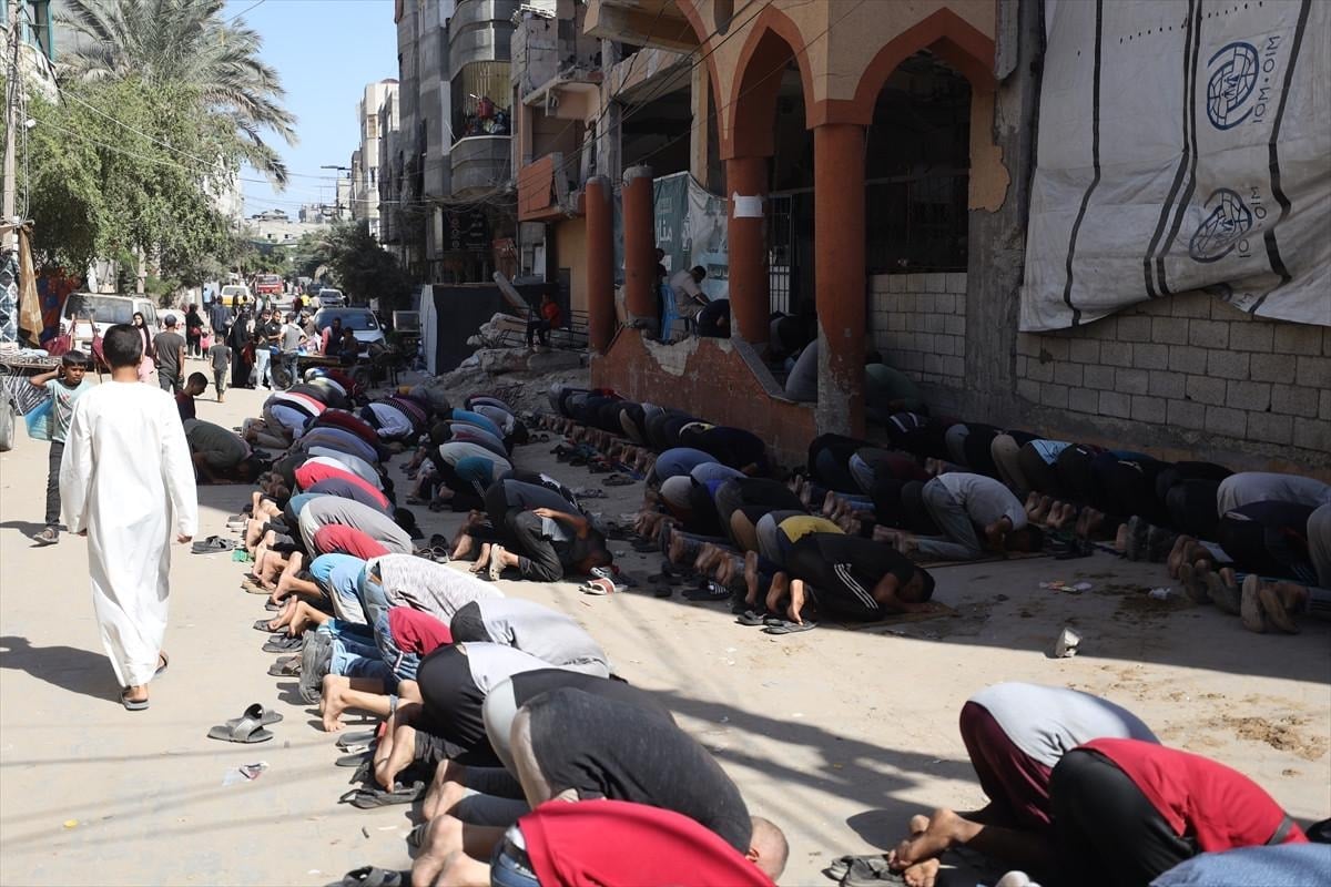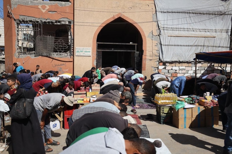 Gazze Şeridi’nde ateşkes sonrası ilk cuma namazı, Nuseyrat Kampı’ndaki kısmen yıkılan Faruk Camii’nde kılındı.