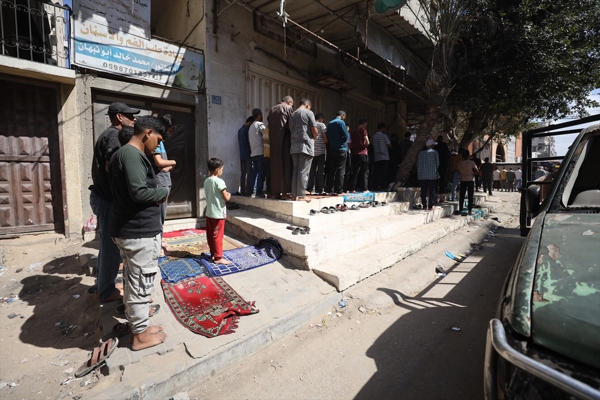 Yüzlerce Filistinli saf tutarken, İsrail saldırılarında hayatını kaybedenler için dualar edildi.