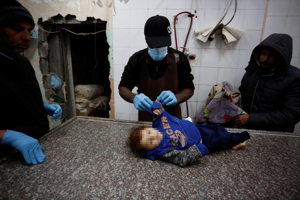 Bir yaşındaki bebek Muhammed Besyuni, İsrail saldırıları nedeniyle yerinden edilen ailesinin kaldığı çadırın soğuk havaya dayanıksız olması sebebiyle donarak hayatını kaybetti.