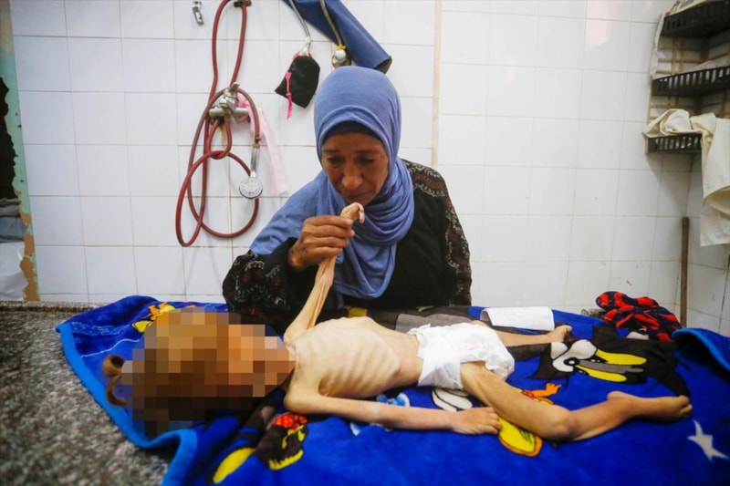 Gazze'nin orta kesimindeki Deyr Belah kentinde yetersiz beslenme sıkıntısı yaşayan bir buçuk yaşındaki Sanaa El Laham, yaşamını yitirdi.