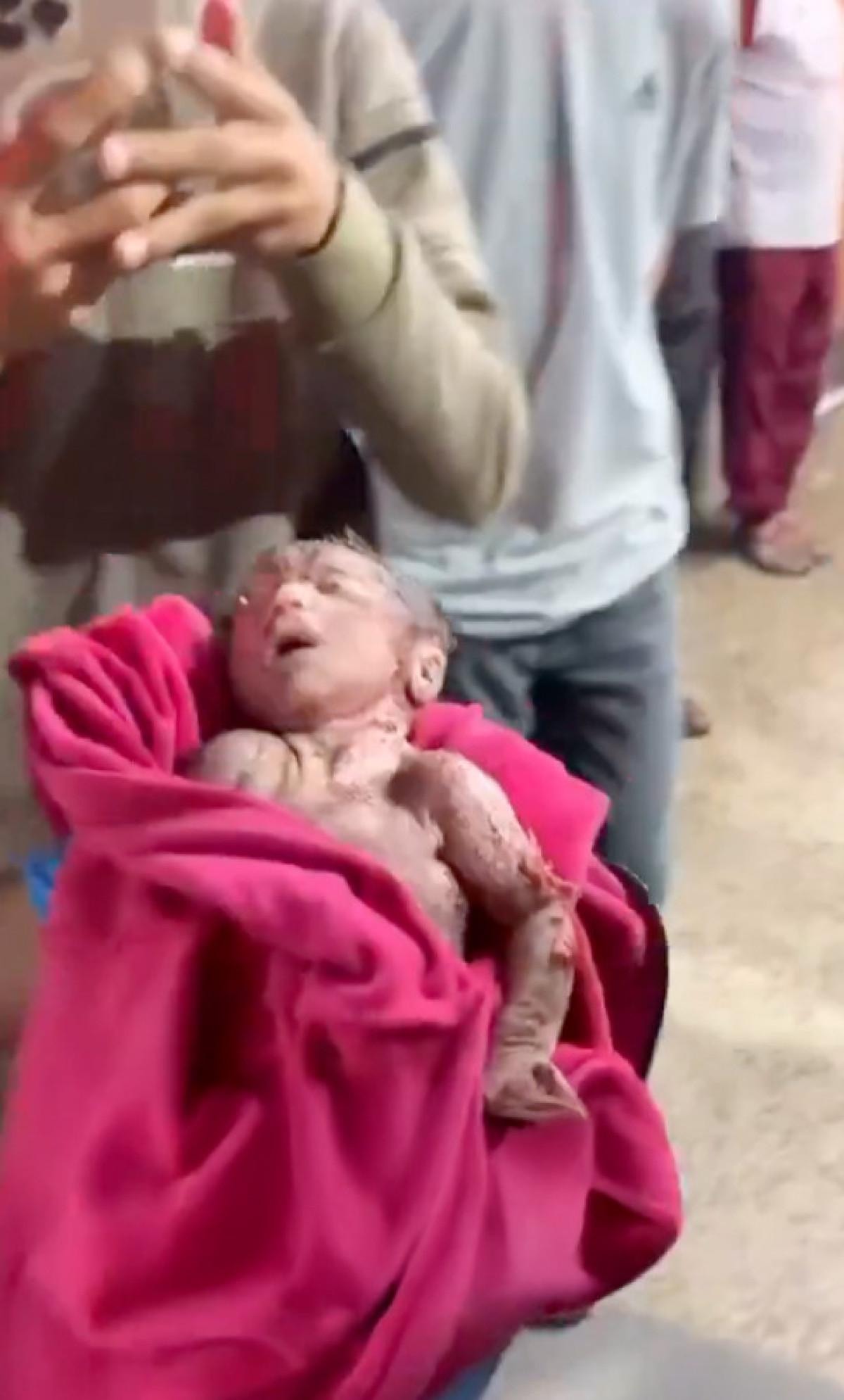 Sağlık görevlilerinin ellerinde hastaneye getirilen bebeğin görüntüsü, görenlerin yüreğini burktu.