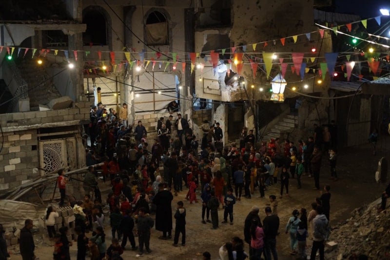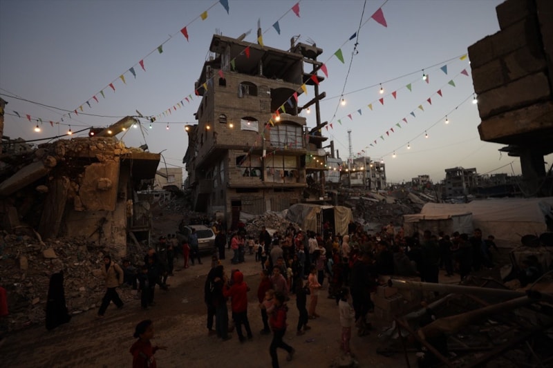 Filistinliler, yıkımın ortasında sokaklara asılan Ramazan süsleriyle ayın manevi atmosferini yaşadı.