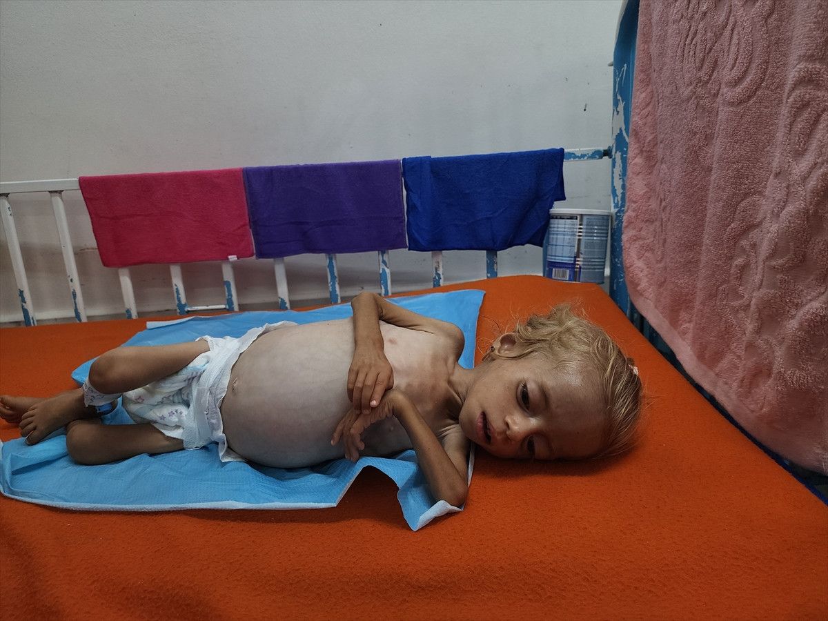 Yetersiz beslenme sorunu yaşayan 2 yaşındaki Şam Kadih, Gazze’nin Han Yunus kentindeki Nasır Hastanesi’nde, mama ve ilaç eksikliği nedeniyle kısıtlı imkânlarla tedavi ediliyor.