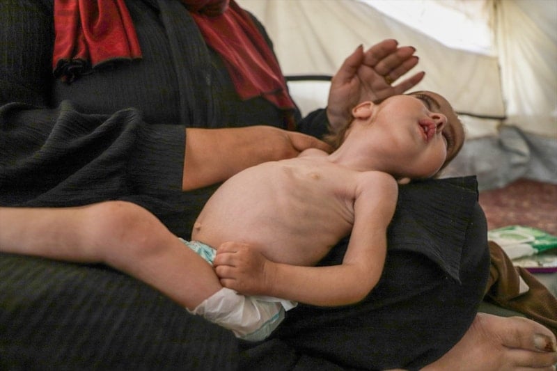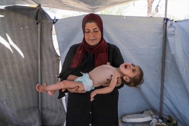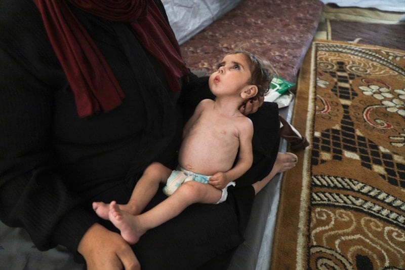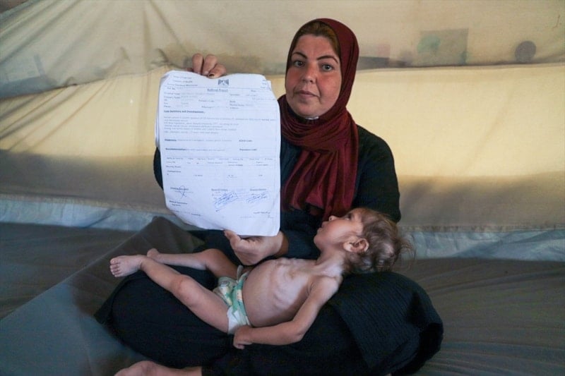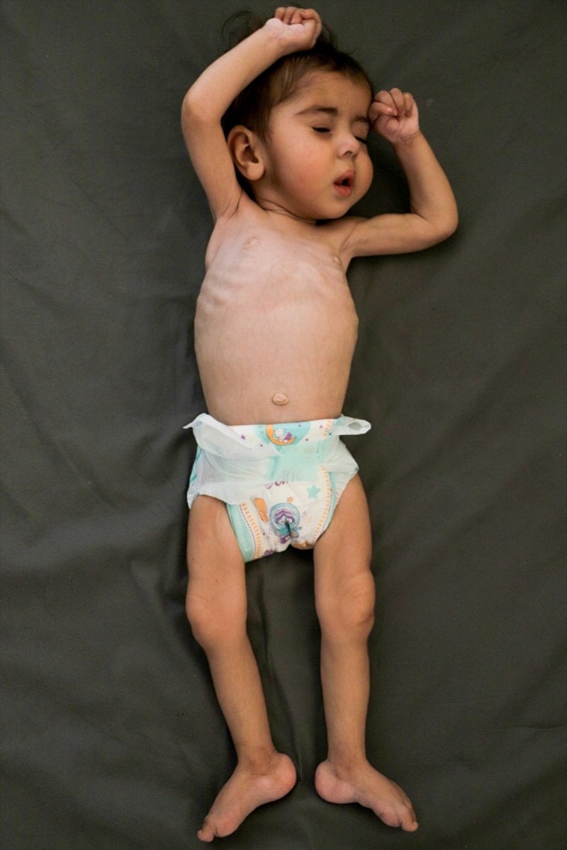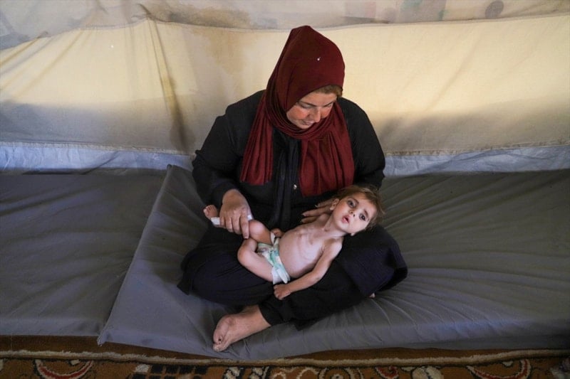 Gazze Şeridi’nin orta kesimindeki Zevayide bölgesinde derme çatma bir çadırda ailesiyle yaşayan 1,5 yaşındaki Filistinli Rital Raid Haniyye, gıda ve tıbbi tedaviye erişimdeki yetersizlik nedeniyle şiddetli yetersiz beslenme sorunu yaşıyor.