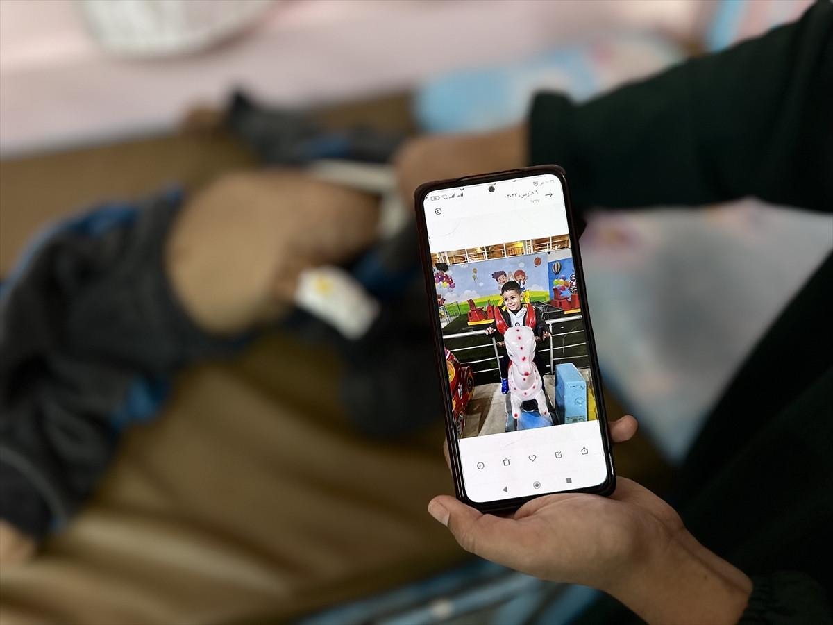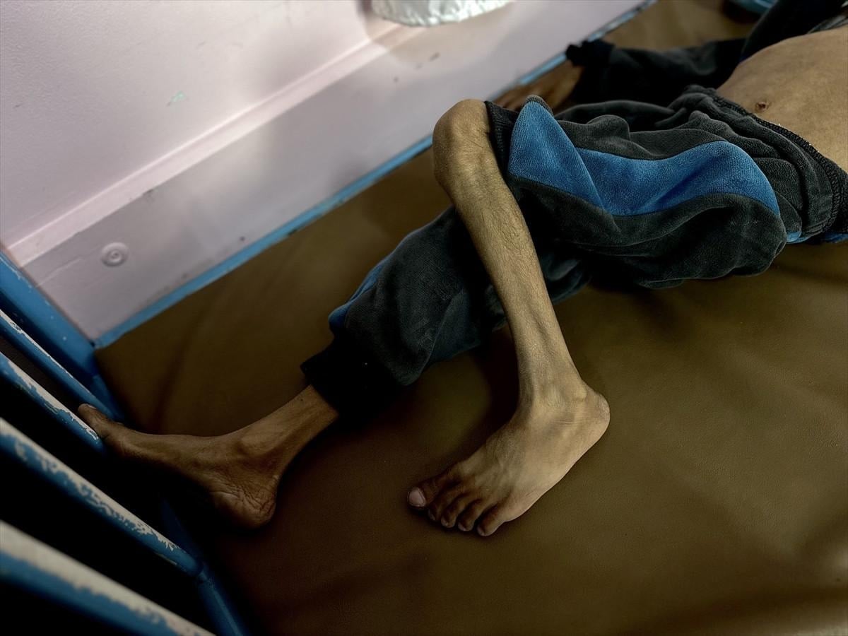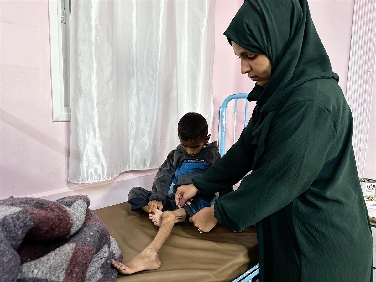 Osama El Rakab adlı Filistinli çocuk, yetersiz beslenmeye bağlı vücut zayıflığı sorunlarıyla Gazze kentinin güneyinde yer alan Han Yunus kentindeki Nasır Hastanesi'nde yaşam mücadelesi veriyor.