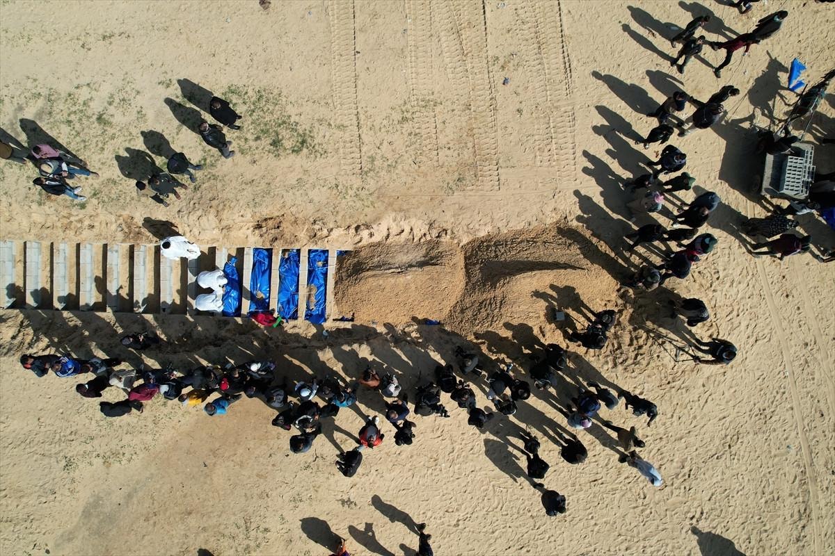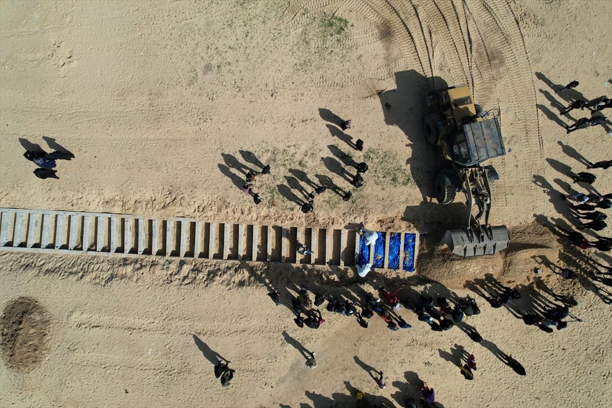 Yetkililer İsrail ordusunun teslim ettiği 100 Filistinli vatandaşı, Refah kentinde bulunan toplu mezara gömüldü.