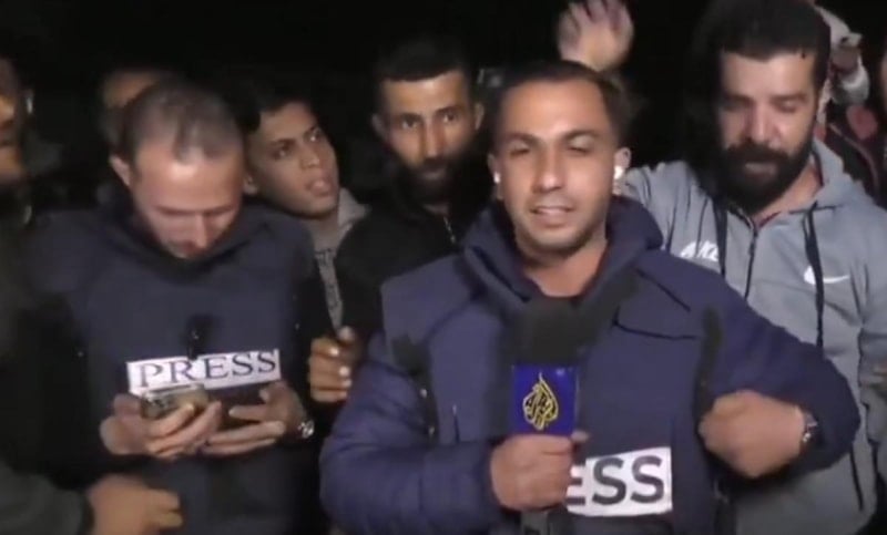 Gazze'de ateşkes anlaşmasına varıldığını duyuran bir gazeteci ise duygusal anlar yaşadı ve üzerindeki çelik yeleğini çıkardı.
