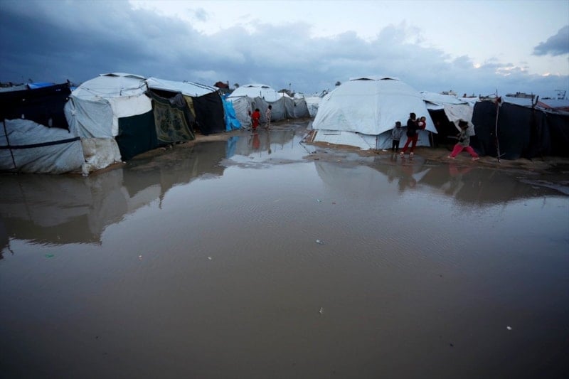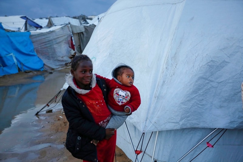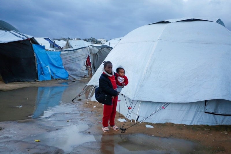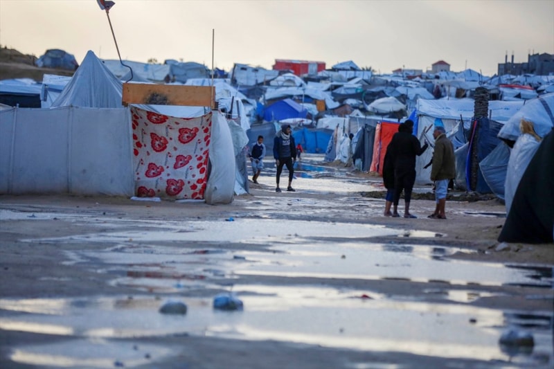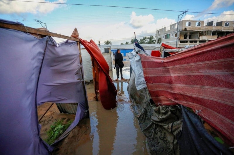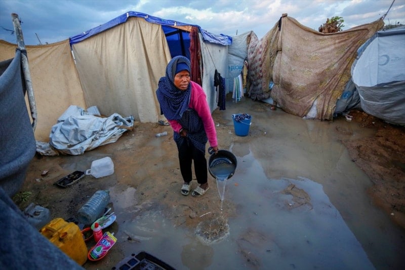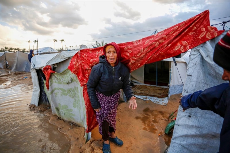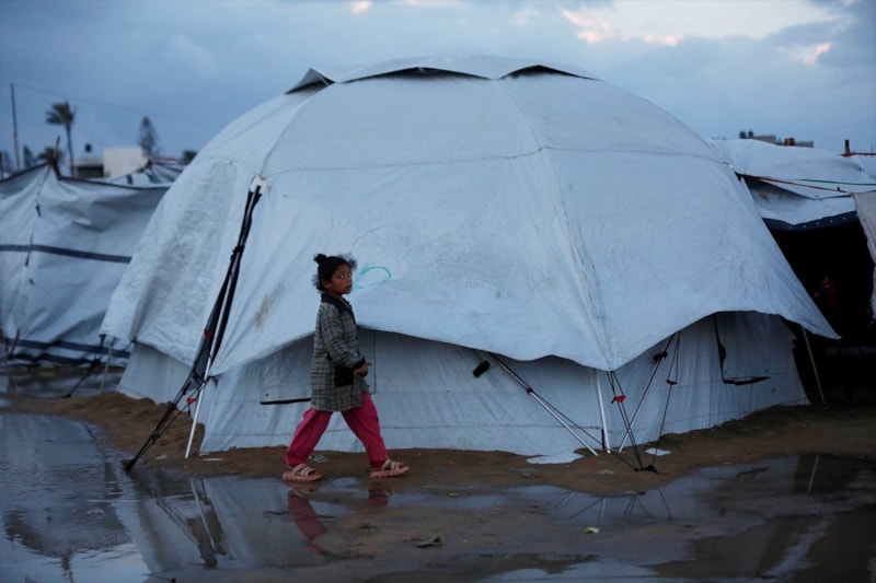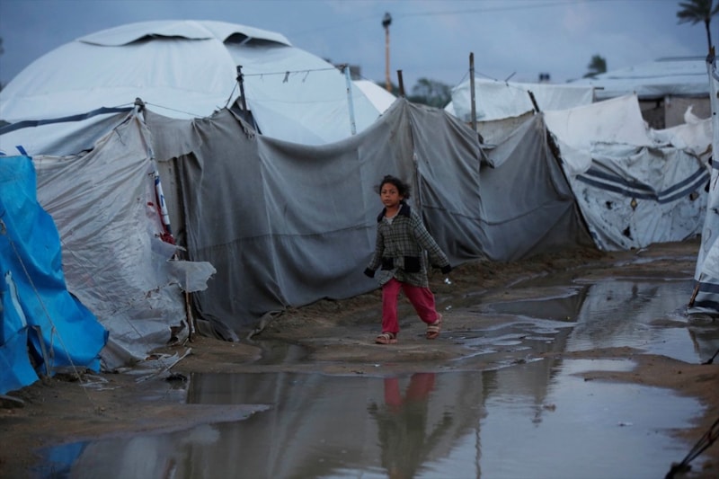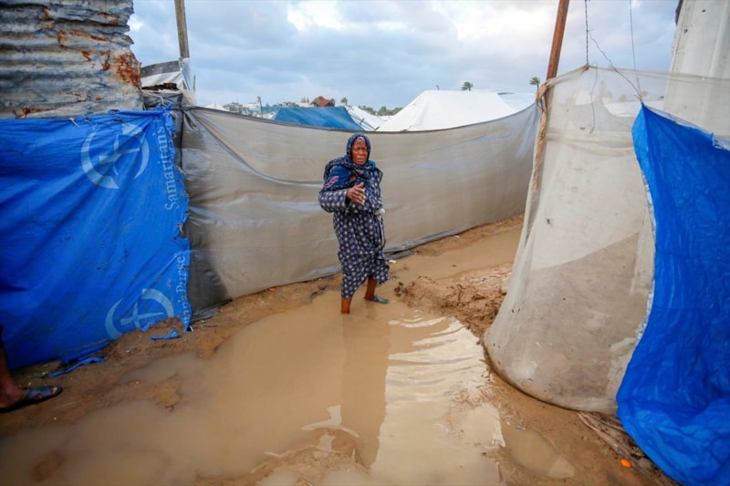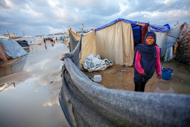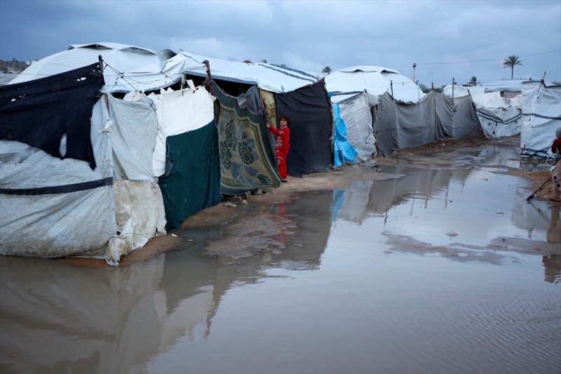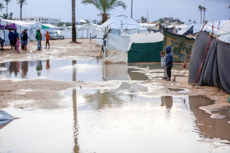 Olumsuz hava koşulları, çadırlarda yaşayan Filistinli ailelerin karşı karşıya olduğu insani sıkıntıları daha da ağırlaştırdı.