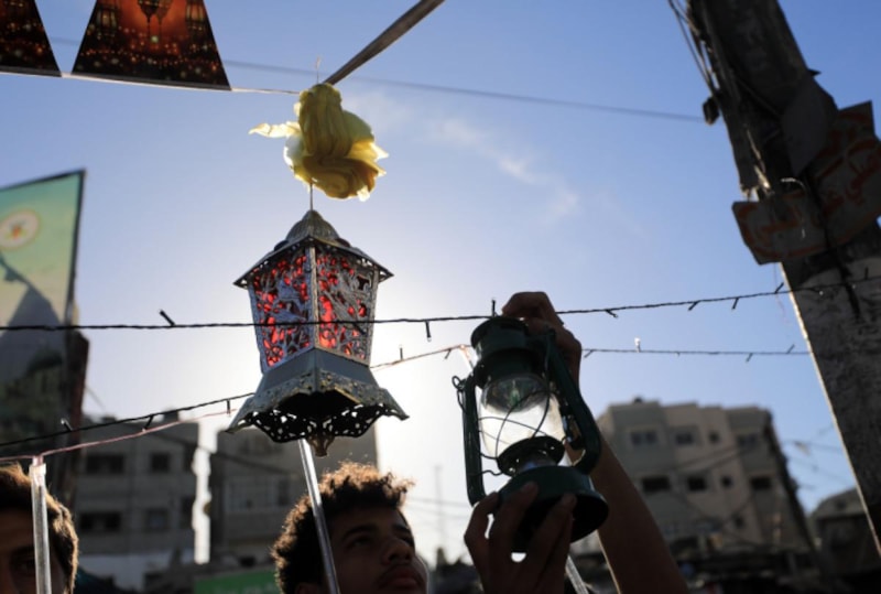 İsrail'in neden olduğu açlık, yıkım ve saldırılar nedeniyle ramazan ayını buruk bir şekilde karşılayan Filistinliler, her şeye rağmen mübarek aya girmeden çadırlarına ışıklar, kandiller ve bayraklar asıyor.