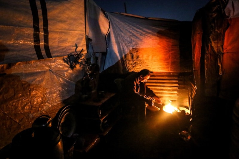 Temel ihtiyaçlardan yoksun kalan aileler, yıkılan evlerinin yakınında kurdukları derme çatma çadırlarda hayata tutunurken, soğuk hava koşullarıyla mücadele ediyor.