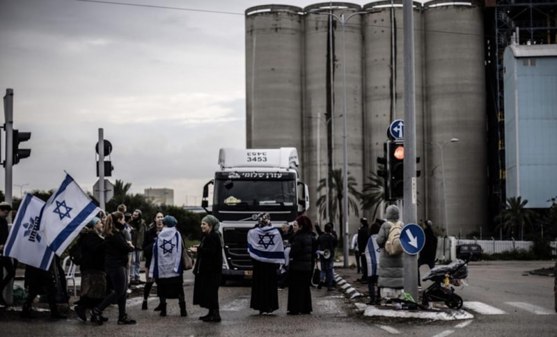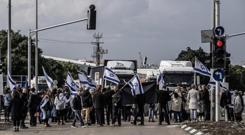 Fanatik Yahudi yerleşimciler, zorunlu açlığa maruz bırakılan, temiz suya ulaşamayan ve barınma krizi yaşayan Filistinliler için Gazze Şeridi'ne gönderilen insani yardımların engellenmesi amacıyla protestolar düzenliyor.