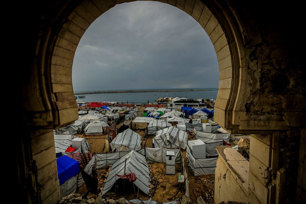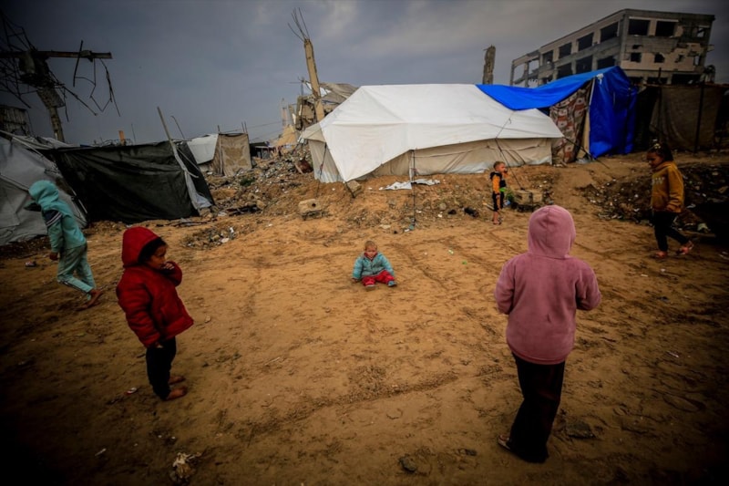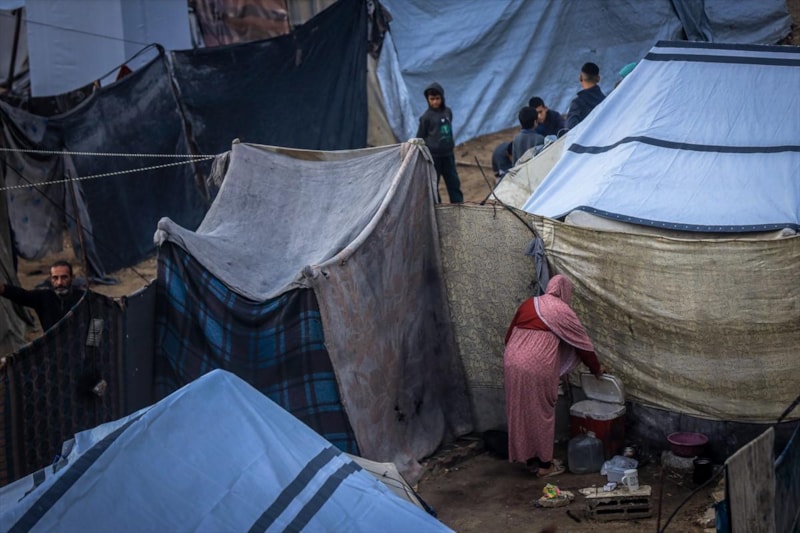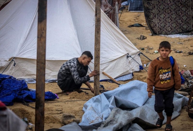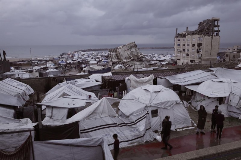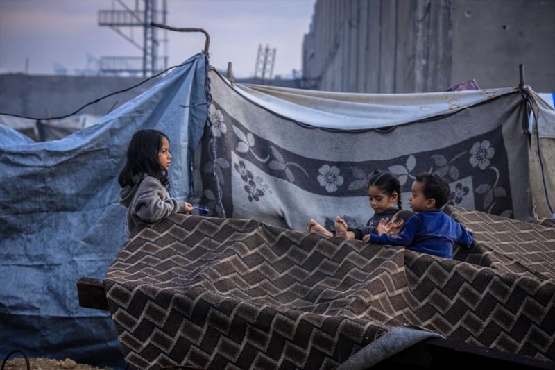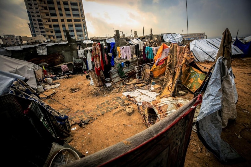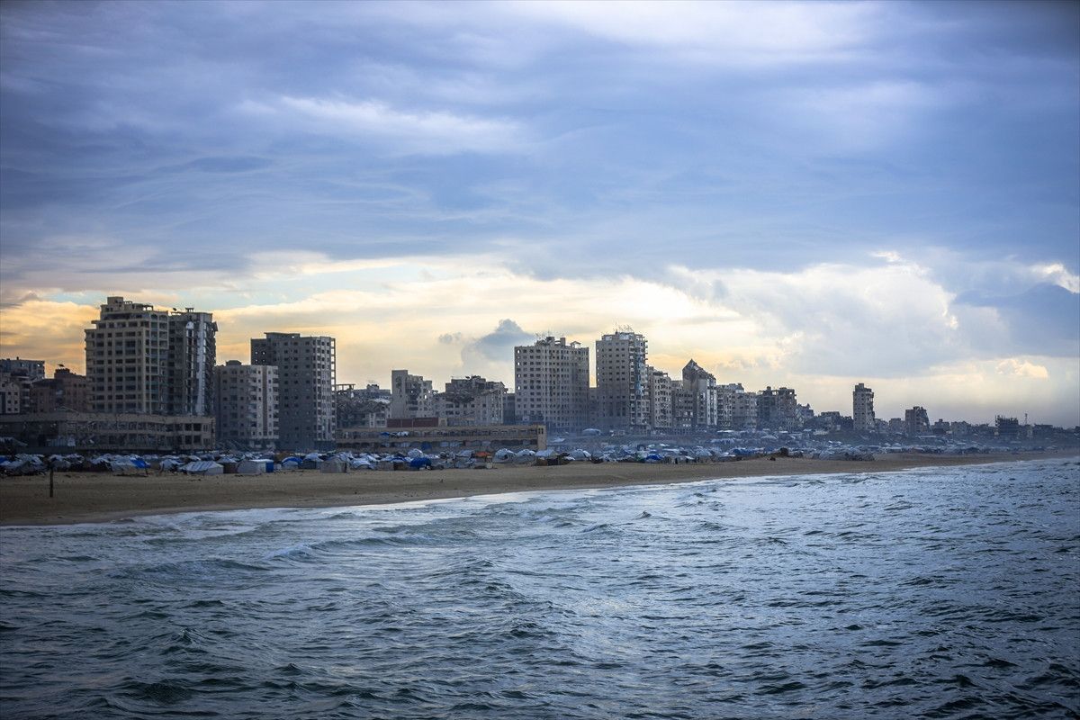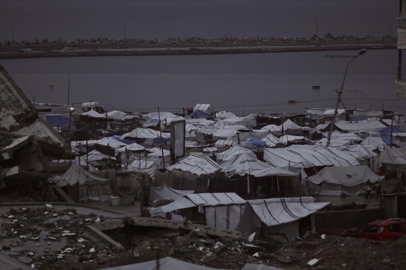 Vatandaşlar, Gazze kentinin batısındaki El-Reşid Caddesi boyunca kurulan derme çatma çadırlarda açlık ve soğukla baş başa kalmış durumda...