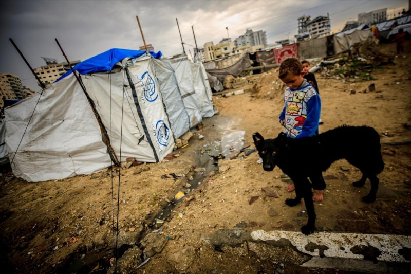 Filistinliler, Gazze kentinin batısındaki El-Reşid Caddesi boyunca kurulan derme çatma çadırlarda yaşam mücadelesi veriyor.