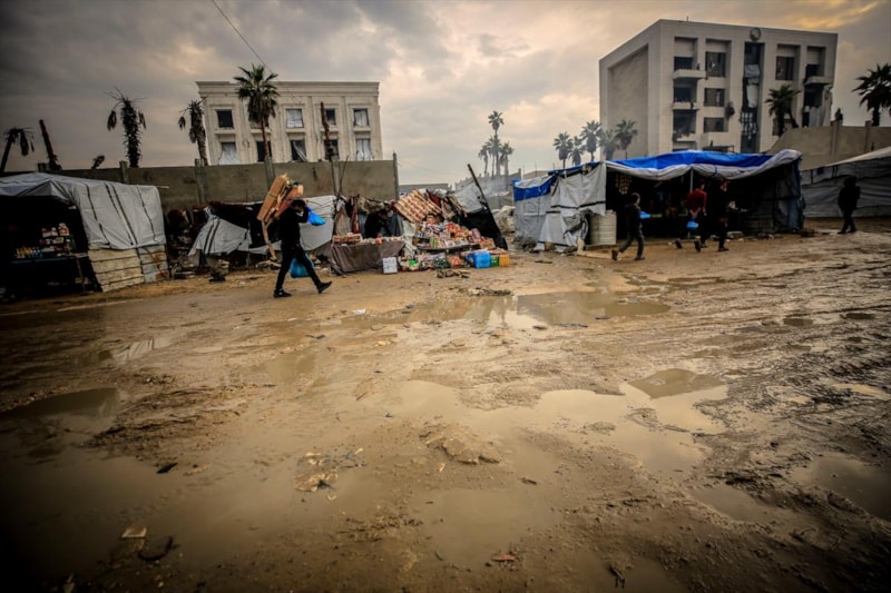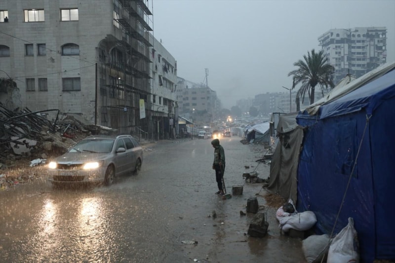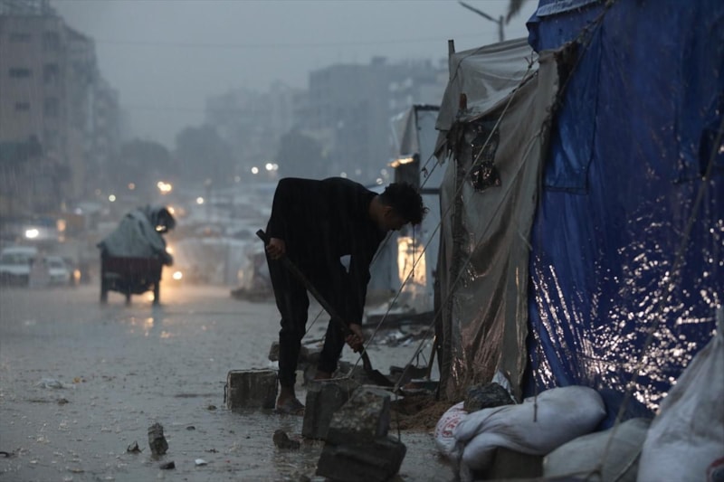 Gazze Şeridi'nin kuzeyindeki Cibaliya Belediyesi, dünden bu yana bölgeyi etkisi altına alan yağışlardan dolayı sokakların ve zorla yerinden edilen Filistinlilerin çadırlarının su altında kaldığını aktardı.