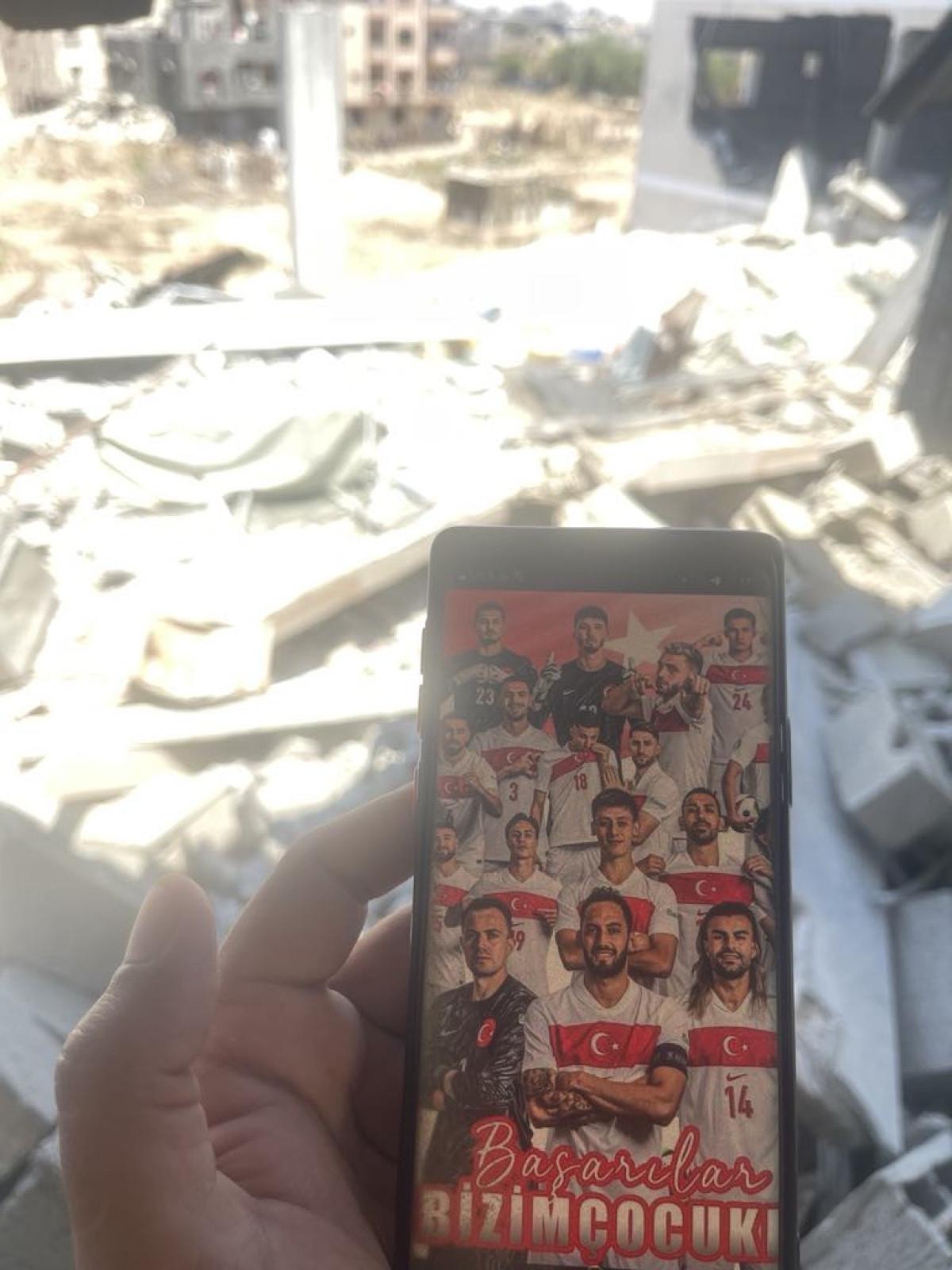 Filistinli bir vatandaş enkaz altındaki Gazze'den A Milli Takım'a destek mesajı verdi.