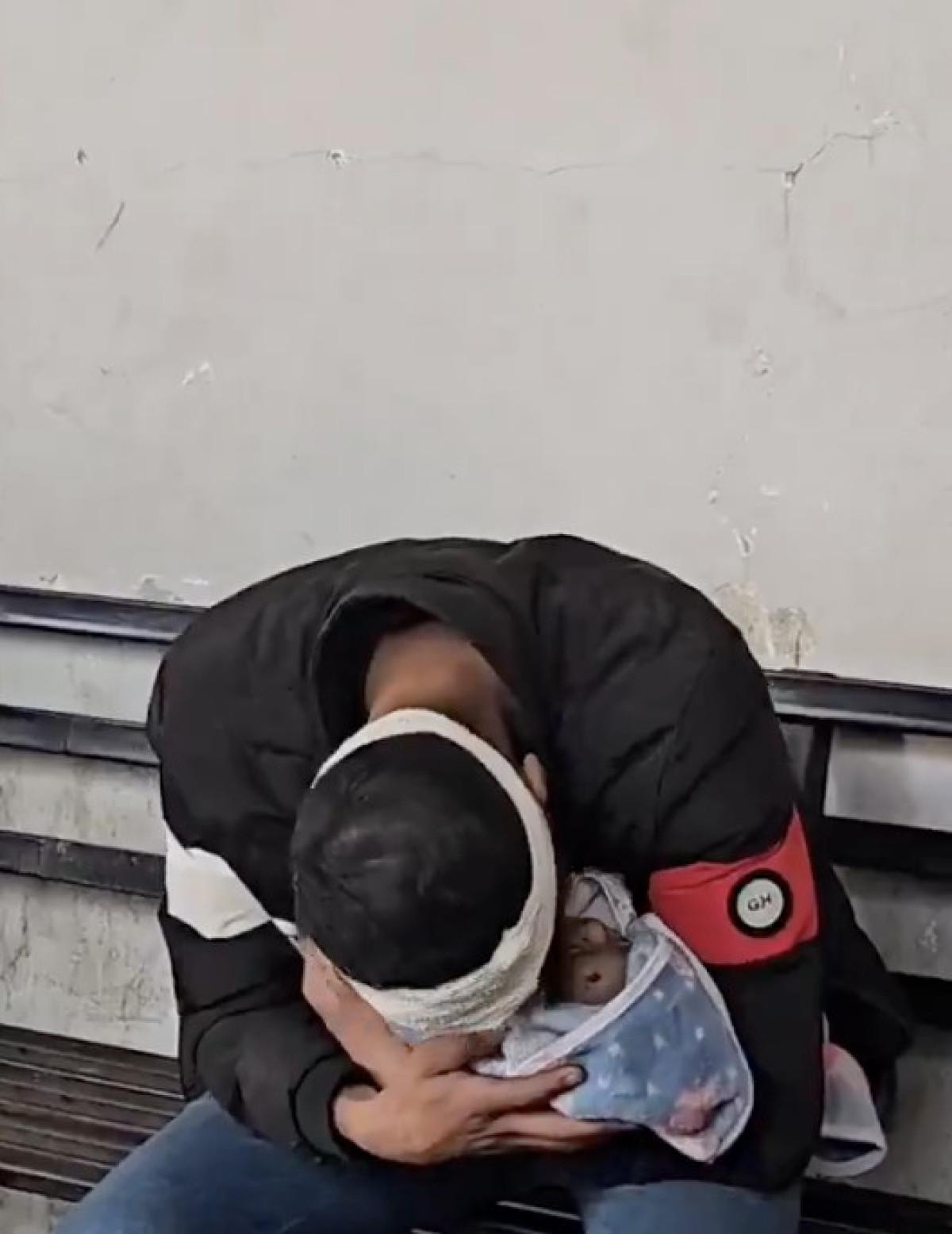 Gazze'de bir baba, hayatını kaybeden bebeğine sarılarak dakikalarca ağladı.