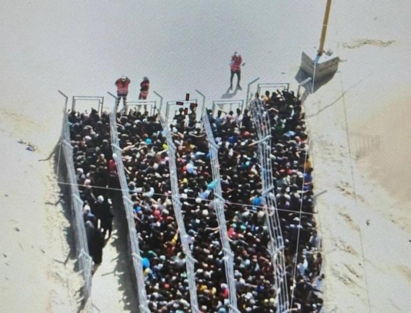 İsrail'in desteklediği yardım vakfının kontrolündeki dağıtım noktasından gelen görüntüler tepki çekti.
